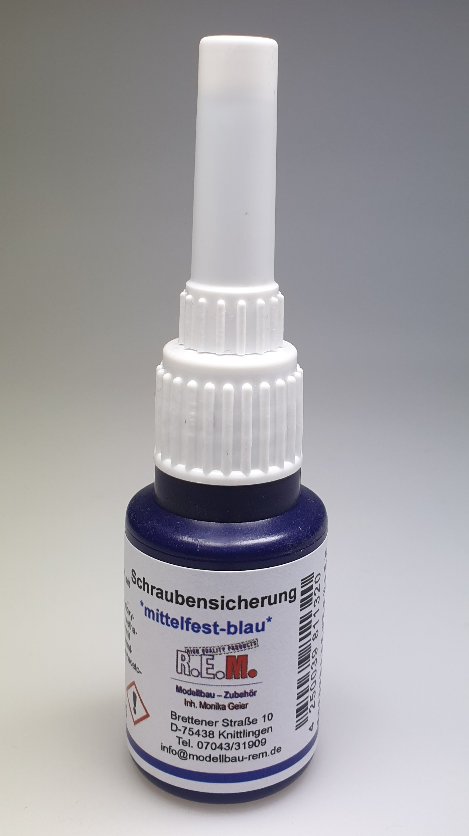 ![]() | 040080 | | REM Schraubensicherung blau/mittelfest 10 g Zusatzinfo: Schraubensicherung für alle Schrauben mit Gewinde bis M 36 hochviskos - mittelfest - demontierbar Gebrauchsanweisung: Spaltfüllvermögen: 0,25 mm Handfest: 10 - 20 Minuten Funktionsfest: 1 - 3 Stunden Temperaturbeständig: -55°C bis +150°C |