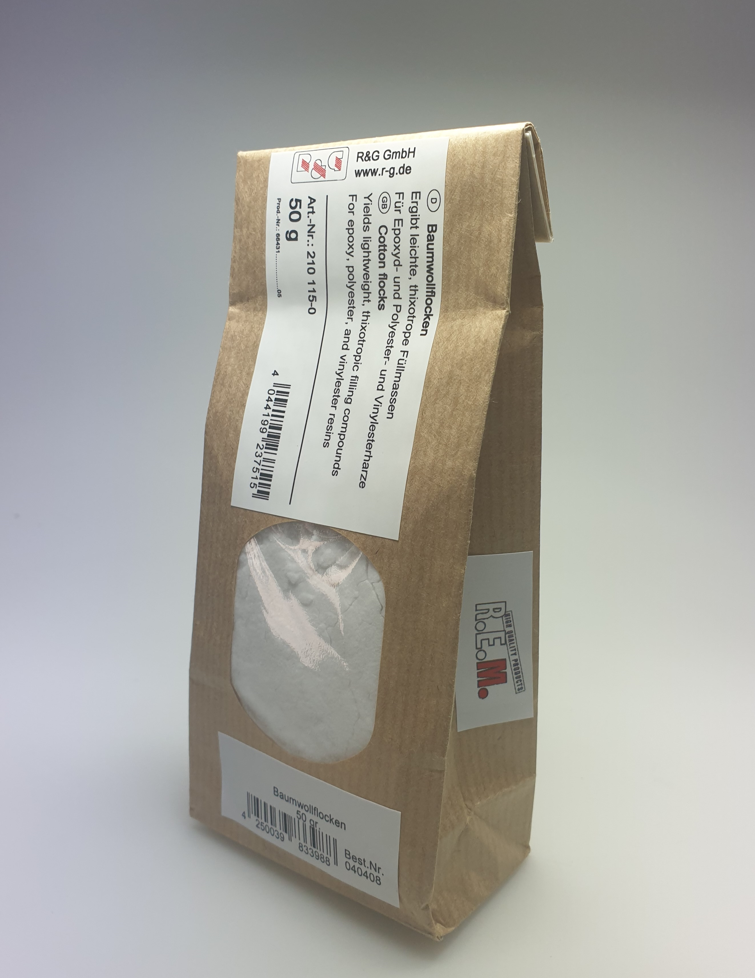 ![]() | 040408 | | Baumwollflocken 50 g Zusatzinfo: Natürlicher Füllstoff für Epoxyd-und Polyesterharze. Sehr gut geeignet zum Eindicken, erhöht die mech. Festigkeit der Formstoffe. Anwendungsgebiet: Herstellung leichter, nicht ablaufender Kleber und rieselfähiger Pressmassen sowie Kupplungsschichten im Formenbau, wobei eine Mischung aus 50 Vol.-% Glasfaserschnitzel und 50 Vol.-% Baumwollflocken verwendet wird. |